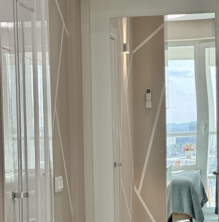 Стильная дизайнерская видовая студия в прекрасном жилом комплексе в одной минуте от метро. В квартире есть все необходимое для комфортного проживания: новый ортопедический матрас, огромное количество мест для хранения, полноценная, хорошего качества, кухня с техникой и столешницей из камня, тропический душ, панорамная лоджия, кондиционер. Парковка на закрытой территории. Предложение для одного проживающего, без детей, без животных.