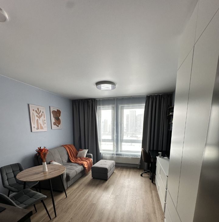 ОТ СОБСТВЕННИКА! Предлагаем в аренду уютную студию площадью 22 кв. м на 10 этаже нового 33-этажного дома, построенного в 2023 году. Квартира находится в пешей доступности от метро, всего 10 минутах ходьбы.