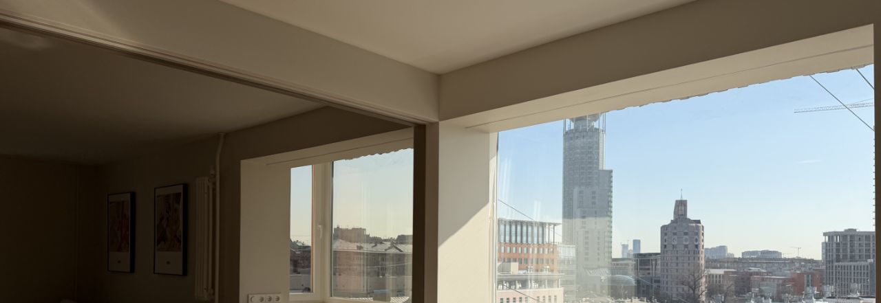 Остекление: панорамное (2 стороны света) — вид на город и реку.