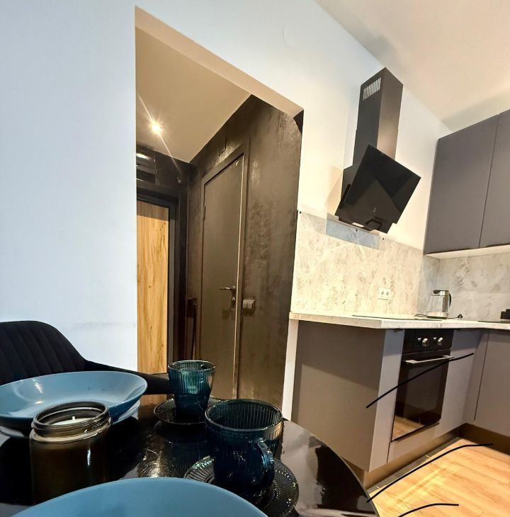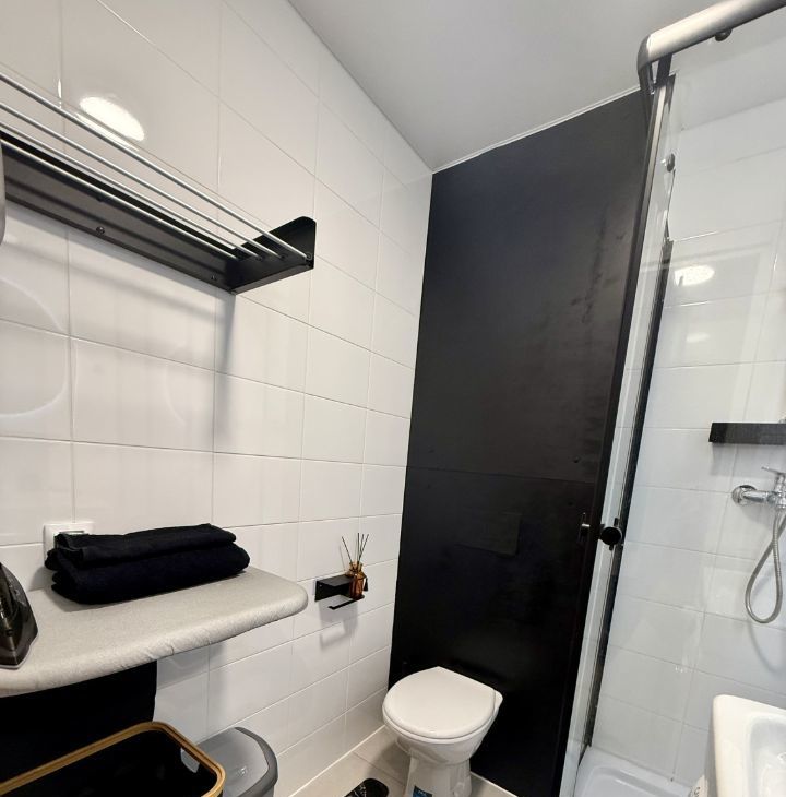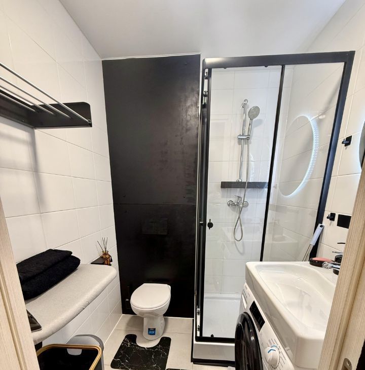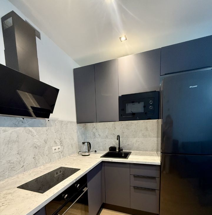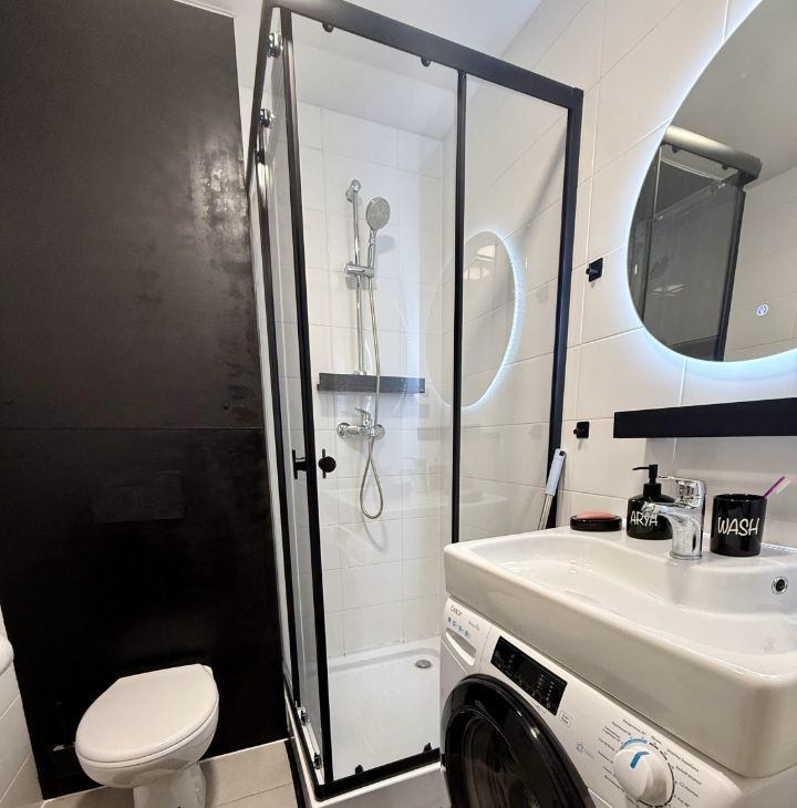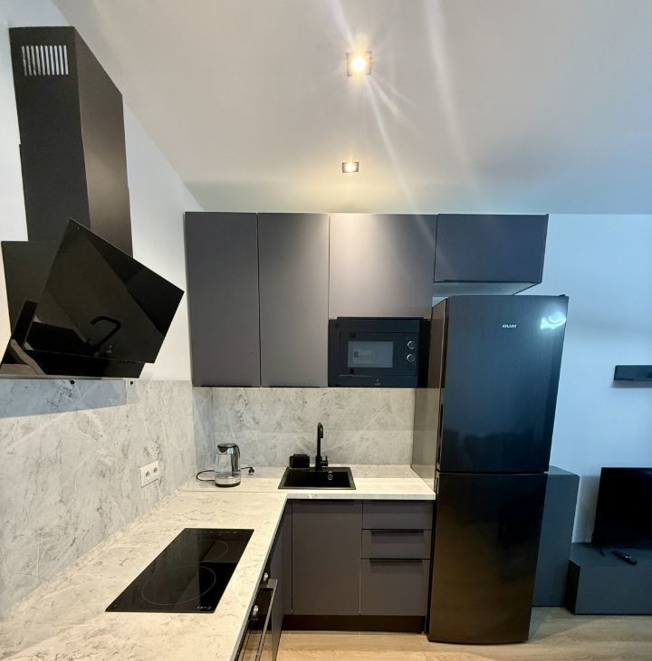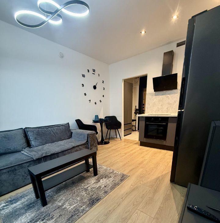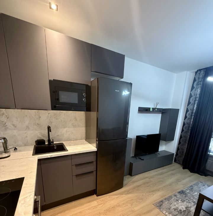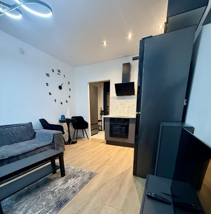 В квартире есть всё необходимое для проживания: современная мебель в комнате, телевизор, холодильник и стиральная машина. Ванная комната оборудована душевой кабиной. Открытая планировка студии позволяет удобно зонировать пространство по вашему усмотрению.
