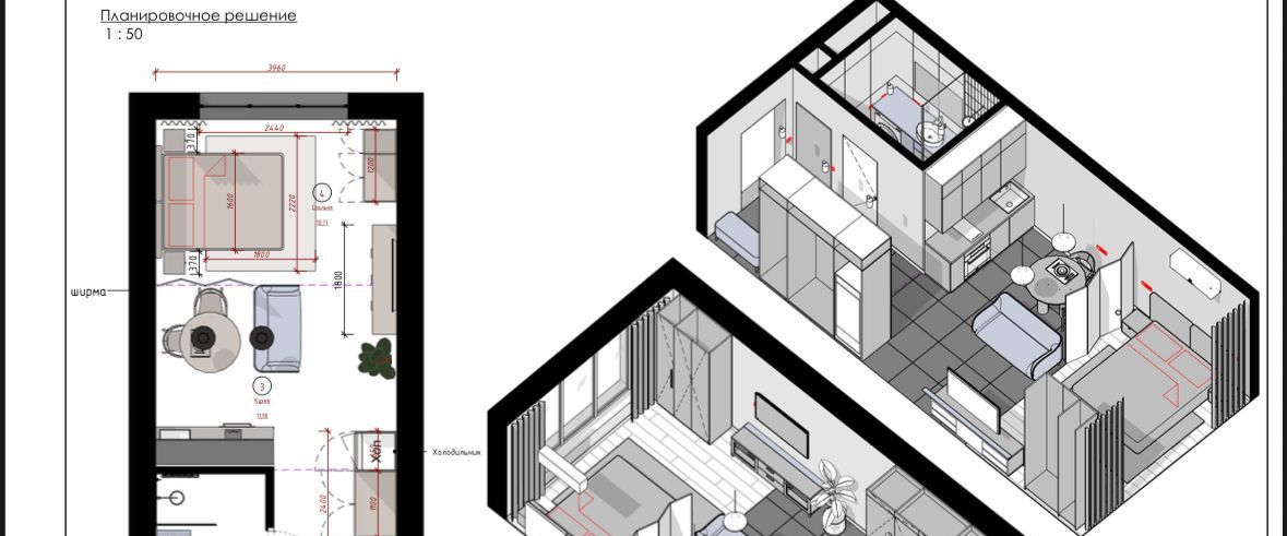 В квартире есть всё необходимое для жизни: удобная мебель, кондиционер, холодильник, телевизор и стиральная машина с сушкой. Просторная комната с продуманной планировкой создаёт ощущение уюта и простора. Санузел совмещённый, оборудован современной душевой кабиной, что добавляет комфорта в повседневную жизнь.