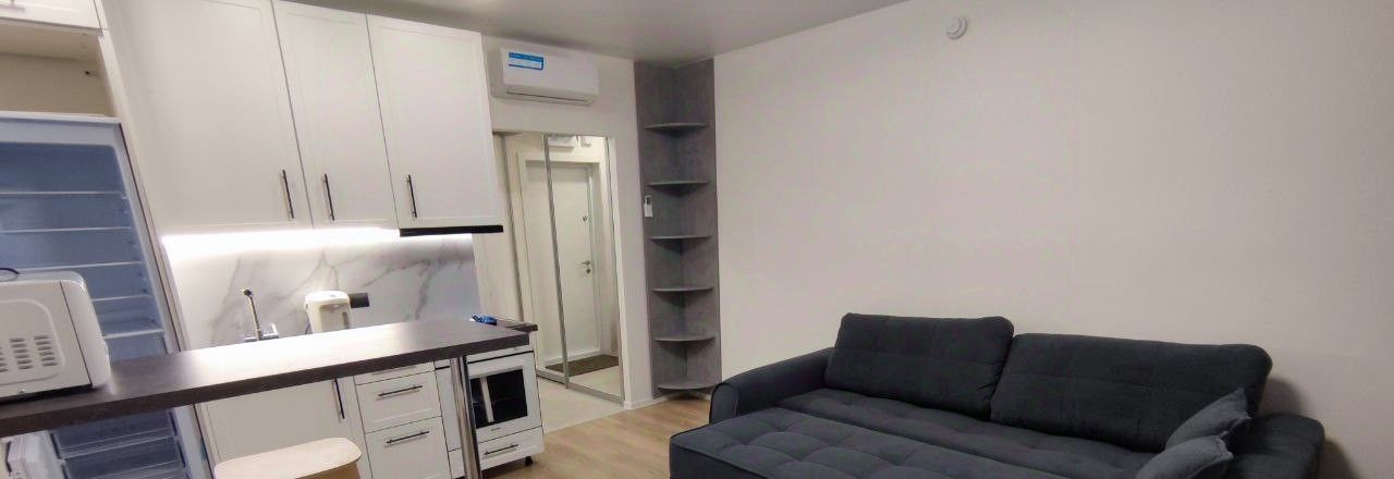 Квартира с евроремонтом, все продумано до мелочей для вашего комфорта. Пространство организовано в формате студии, что позволяет эффективно использовать каждый метр. Совмещенный санузел оборудован современной сантехникой. В квартире есть все необходимое для комфортного проживания, поэтому можно сразу заезжать и жить.