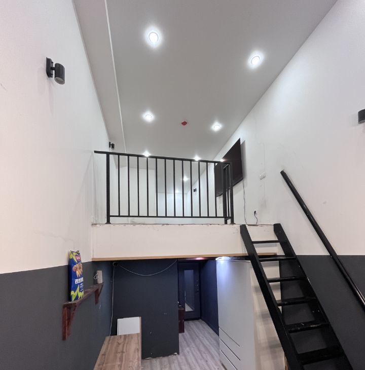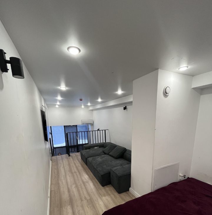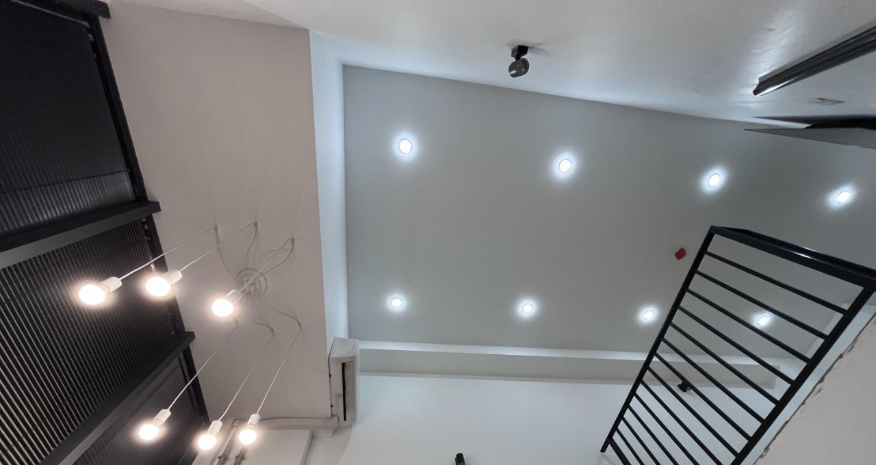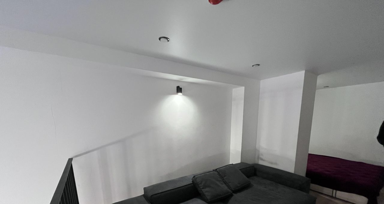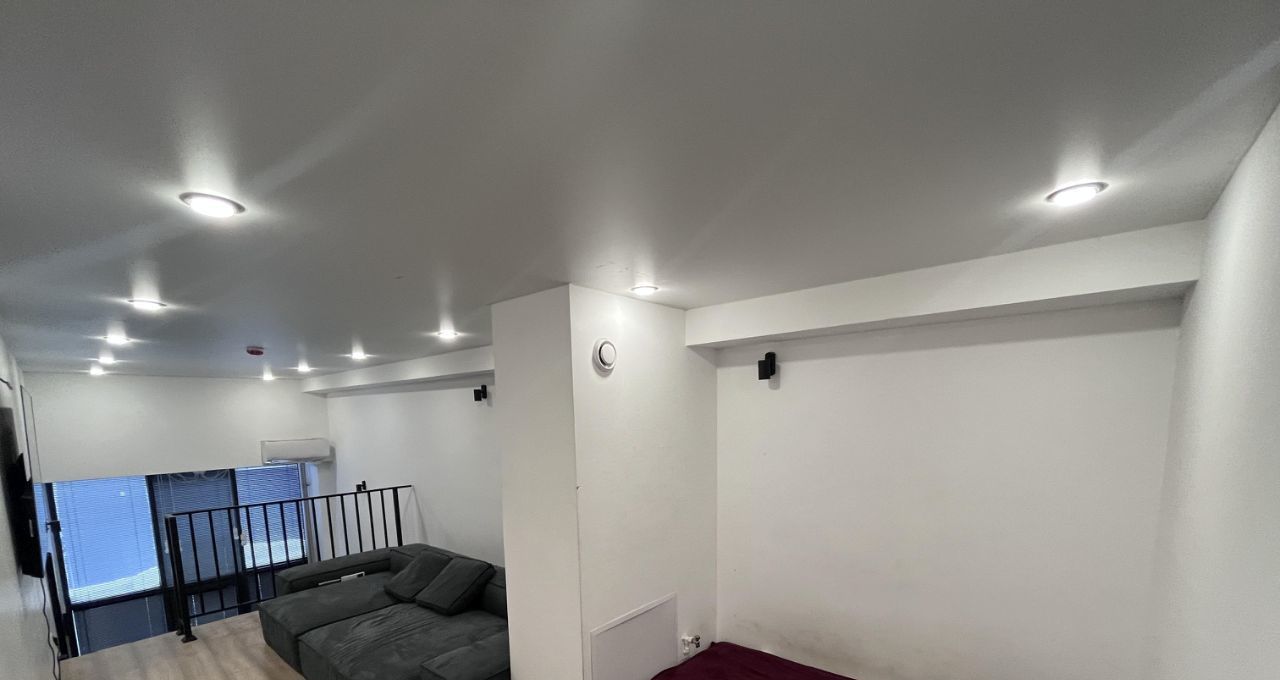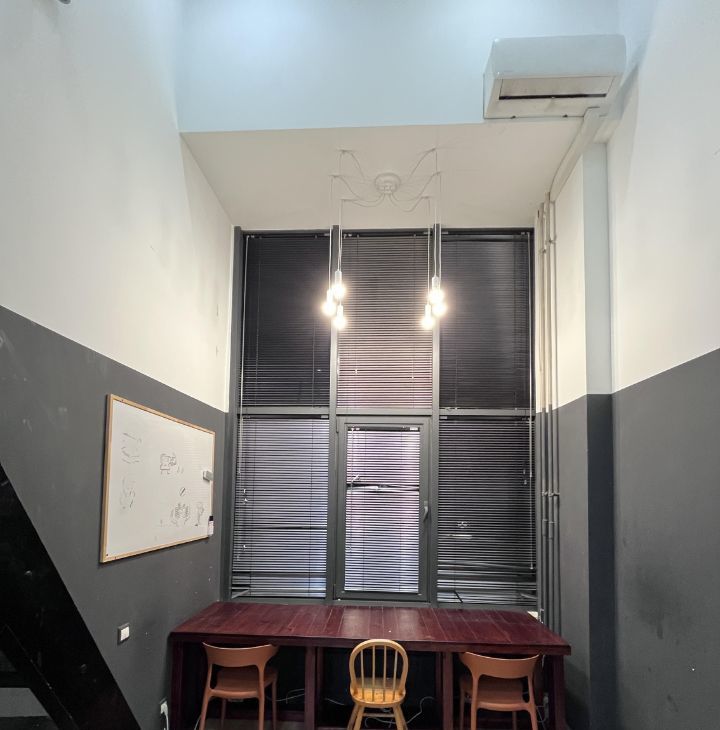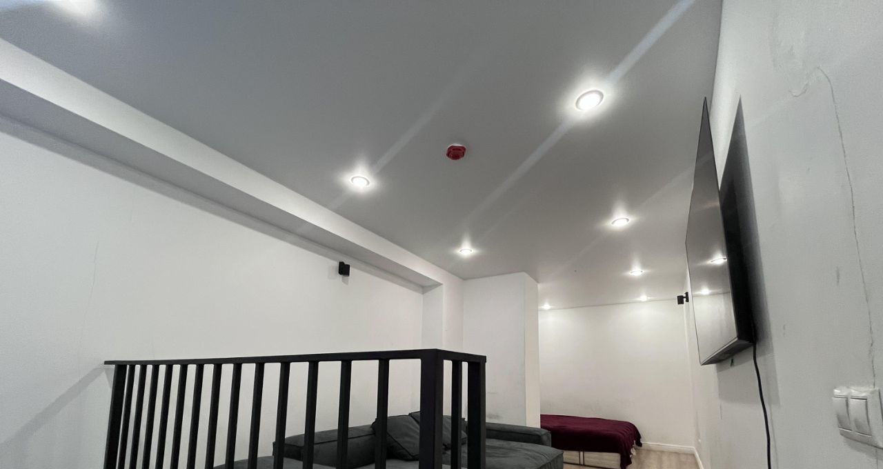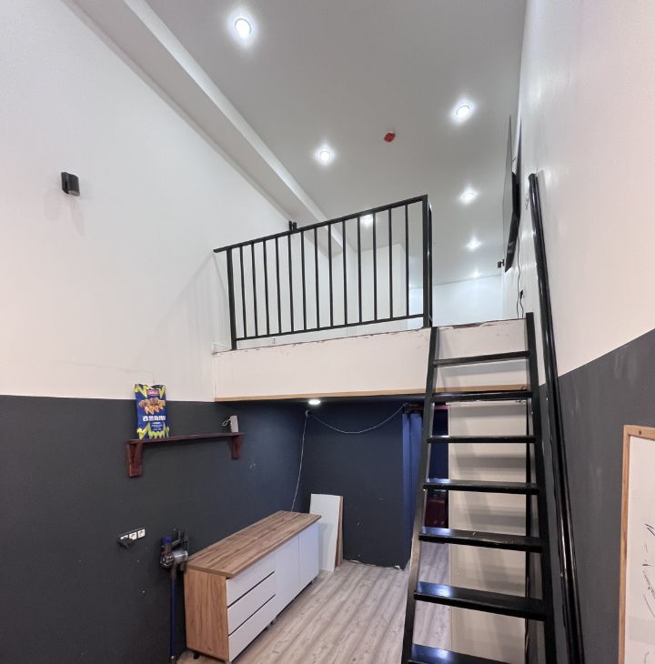 Высота потолков — 6 метров, что создаёт ощущение объёма и позволяет комфортно использовать второй уровень.