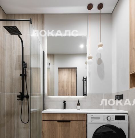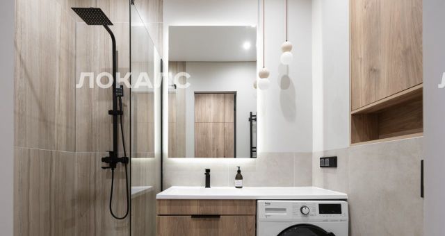 - в ванной комнате оснащена душевая кабина, стиральная машина с функцией сушки, санузлом и теплым полом.