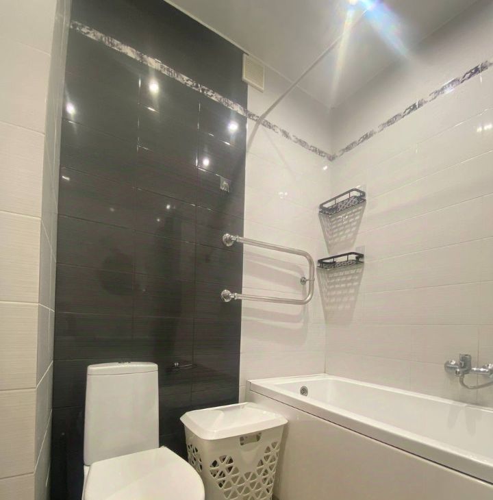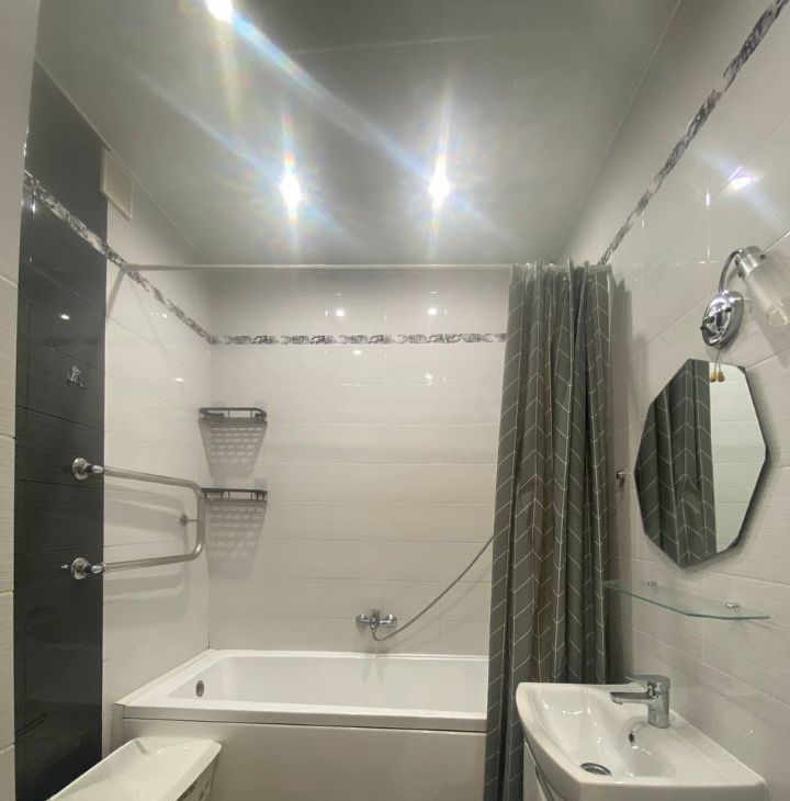 Просторный совмещенный санузел с ванной. Высокие потолки 2.8 метра создают ощущение простора, а окна выходят во двор, поэтому в квартире всегда тихо и уютно.