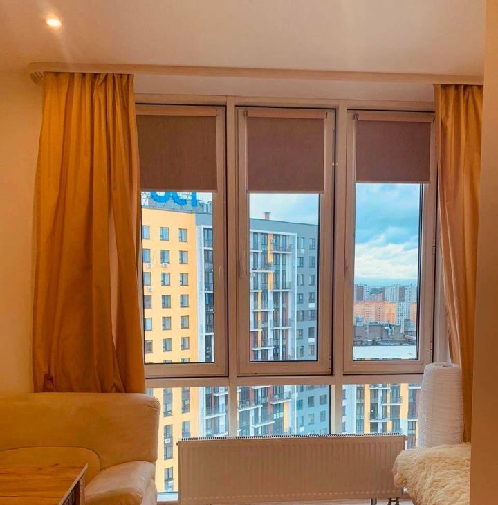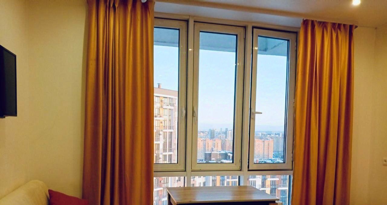 Сдается уютная студия с общей площадью 26 кв. м на 21-м этаже современного дома, построенного в 2018 году. Из окна открывается великолепный вид, особенно вечером.