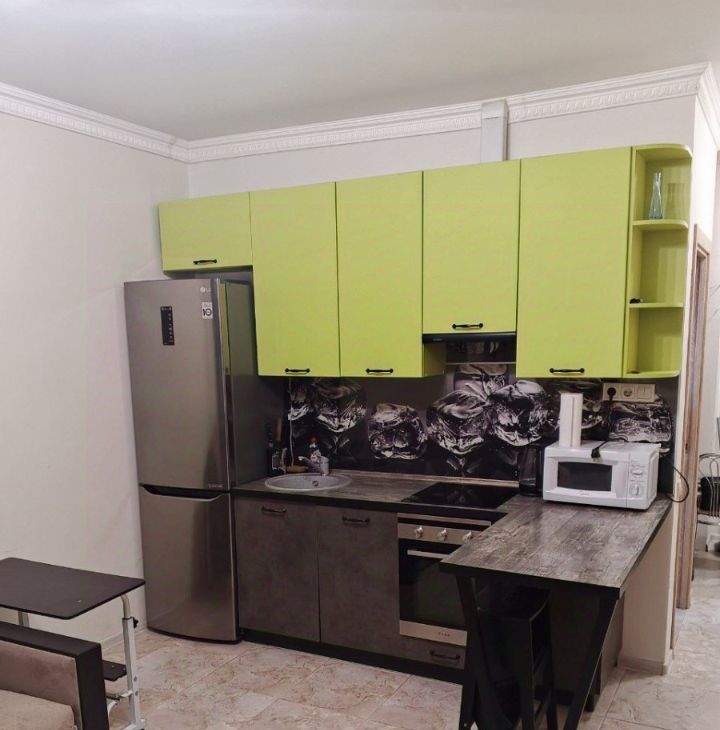 Сдаем Студию с хорошим ремонтом, мебелью и техникой, в квартире все есть для комфортного проживания: в кухонный гарнитур встроен духовой шкаф, варочная панель, посудомойка, есть микроволновка, холодильник, стиральная машина, пылесос, телевизор. Дом оборудован грузовым и пассажирским лифтами, во дворе для автовладельцев предусмотрена наземная парковка.