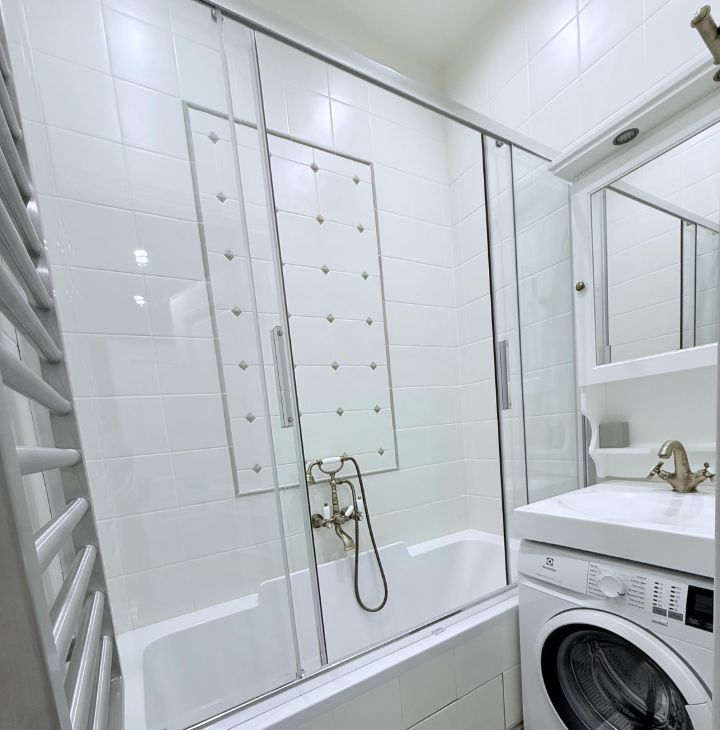 Квартира с дизайнерским ремонтом из дорогих материалов, с хорошей шумоизоляцией, метровыми подоконниками, где можно расположиться с чашкой кофе, и полностью готова к проживанию. В квартире вся новая мебель и техника. Из техники имеются кондиционер, холодильник, посудомоечная и стиральная машины. Санузел раздельный, оборудован ванной. Диван раскладывается, кровать двуспальная с подъемным механизмом и с ортопедическим матрасом. Окна выходят во двор, поэтому в квартире тихо и уютно.
