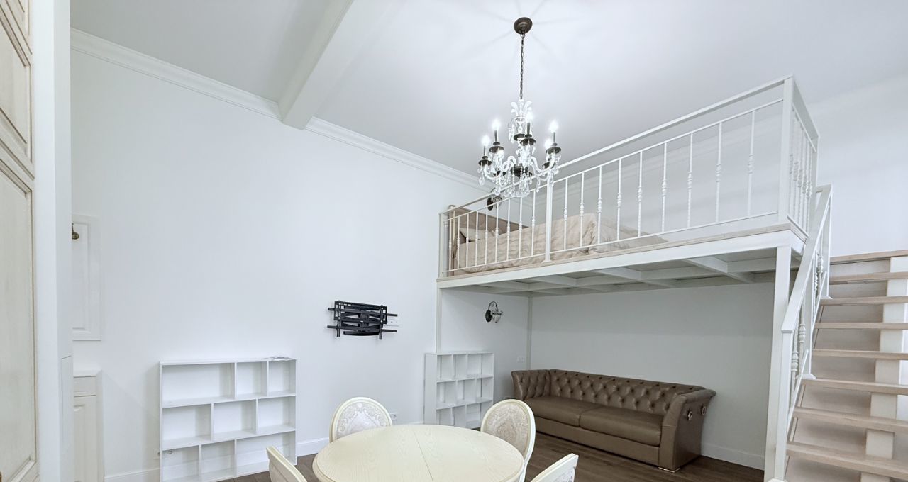 Сдается двухуровневая уютная квартира-студия в историческом кирпичном доме 1931 года постройки, в центре Москвы. Общая площадь составляет 37 кв. м. Квартира расположена на 2-м этаже 5-этажного дома. Высокие потолки 3.6 м создают ощущение простора и свободы. До станций метро Смоленская, Арбатская, Баррикадная всего 11 минут пешком.