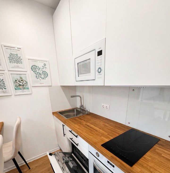 Техника и мебель: посудомоечная машина, духовой шкаф, варочная панель, микроволновая печь, кондиционер.