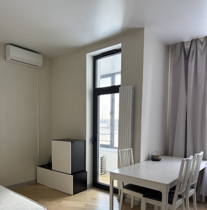 Сдается уютная студия в современном доме, всего в 13 минутах пешком от метро "Авиамоторная". Квартира площадью 26 кв. м расположена на 5 этаже 16-этажного монолитного дома, построенного в 2019 году. Высокие потолки 3.2 метра добавляют простора и света.