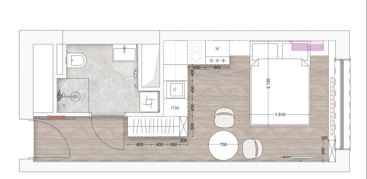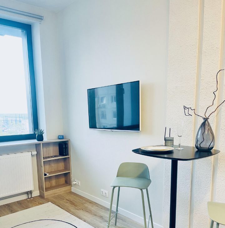 - SMART TV 40", Wi-Fi, тихий инверторный кондиционер и рабочее место с беспроводной зарядкой.