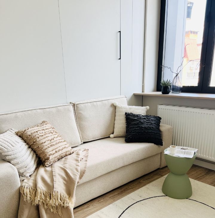 - Кровать-трансформер 160х200 с ортопедическим матрасом, белоснежное бельё и хлопковый плед — для вашего удобства и уюта.