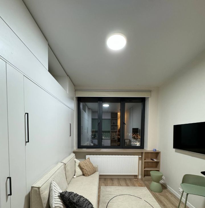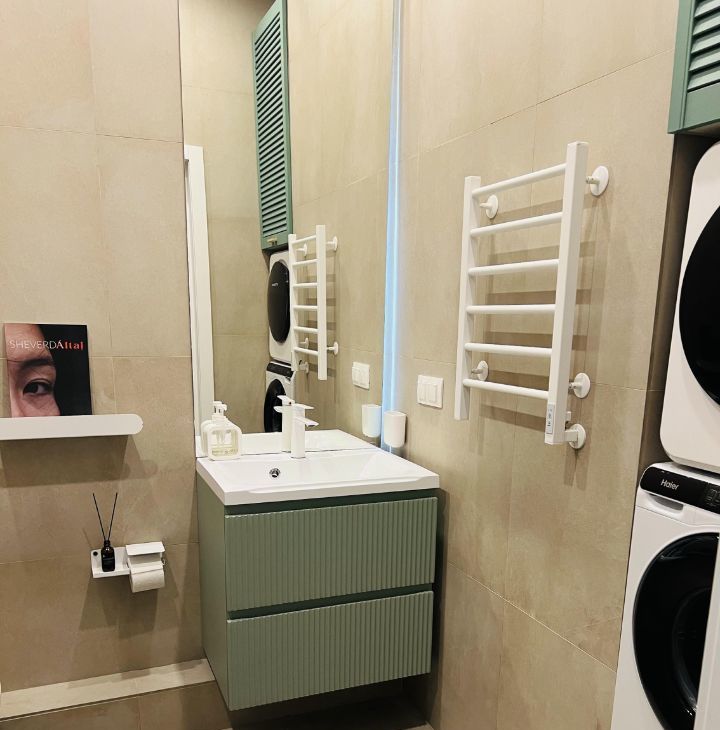 - SMART TV 40", Wi-Fi, тихий инверторный кондиционер и рабочее место с беспроводной зарядкой.