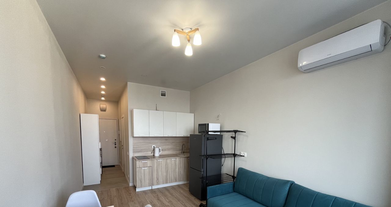 В квартире выполнен евроремонт, что создает уютную и стильную атмосферу. Есть вся необходимая мебель как в комнате, так и на кухне. Для вашего комфорта установлены кондиционер, холодильник и стиральная машина. Санузел совмещенный и оборудован современной душевой кабинкой.