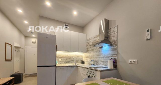 В квартире есть всё необходимое для комфортного проживания: современная мебель на кухне и в комнате, а также вся необходимая техника — холодильник, кондиционер, телевизор и стиральная машина. В ванной комнате установлена душевая кабина, что создаёт дополнительное удобство. В доме есть два пассажирских и два грузовых лифта, пандус и мусоропровод, поэтому можно быть уверенным в доступности и комфорте.