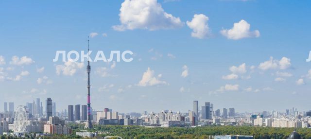 Панорамный вид из окна на Останкинскую башню, Капустинский сквер с прудом.