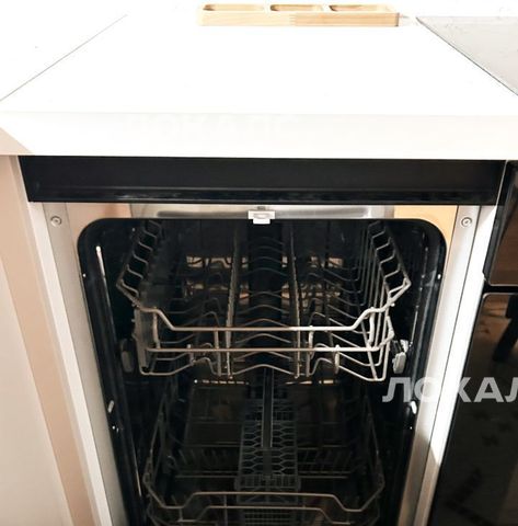 В студии есть все необходимое для комфортной жизни: полноценная кухня со всей встроенной бытовой техникой, включая посудомоечную машину, варочную панель на 4 конфорки, духовой шкаф, микроволновую печь, большой и вместительный шкаф в потолок, в ванной отдельный шкаф для хранения бытовых вещей, стеллаж для книг и подвесная консоль тоже с возможностью хранения вещей, телевизор, кровать 160 на 200, кондиционер, кофемашина, чайник.