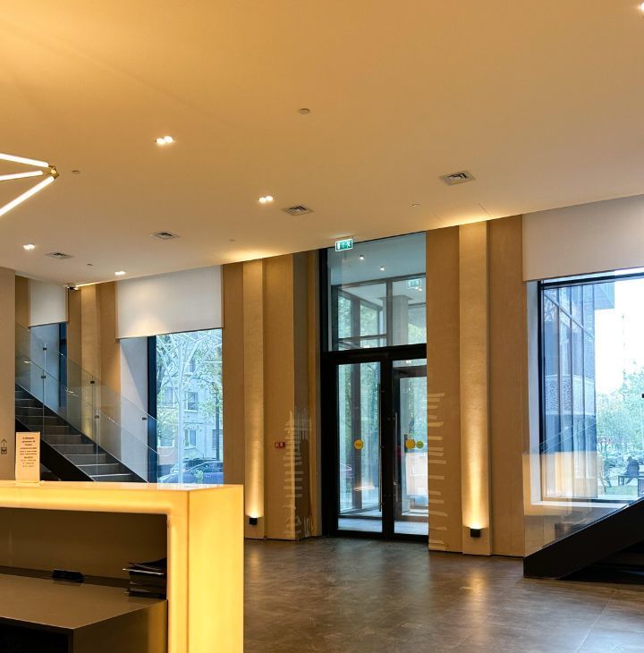 В самом доме находятся: ресторан, библиотека, кинозал, коворкинг, прачечная.