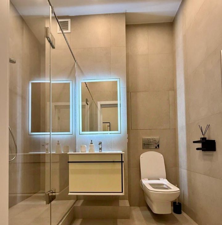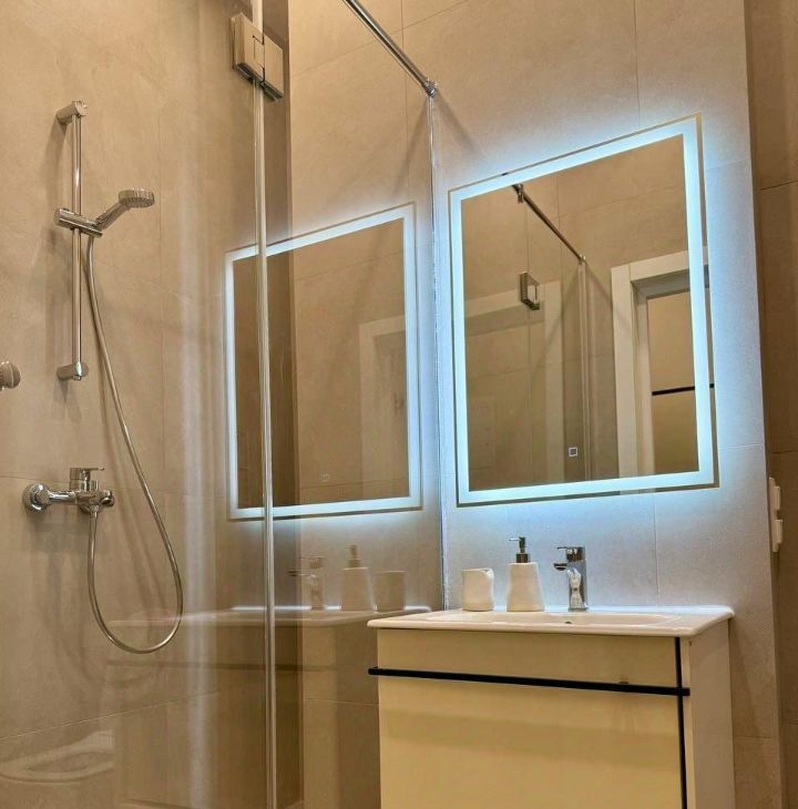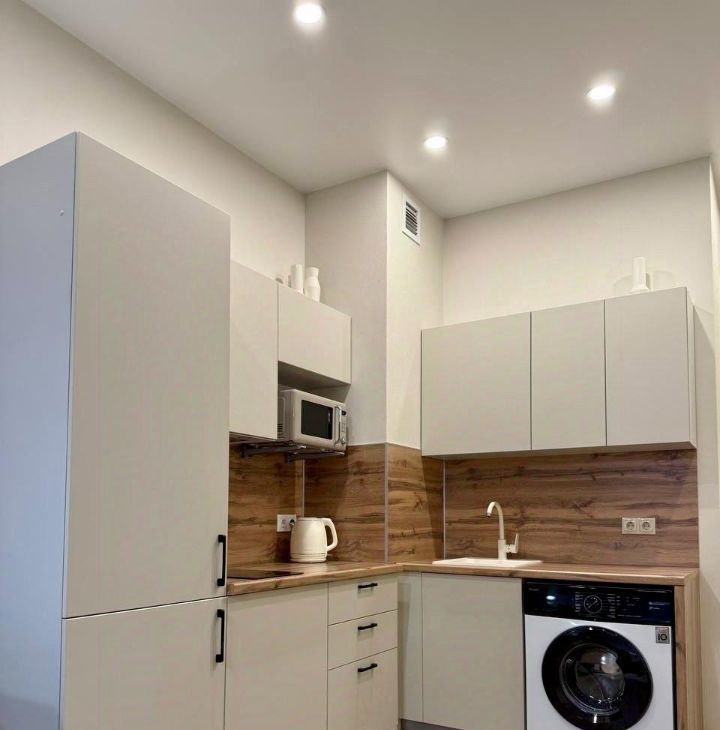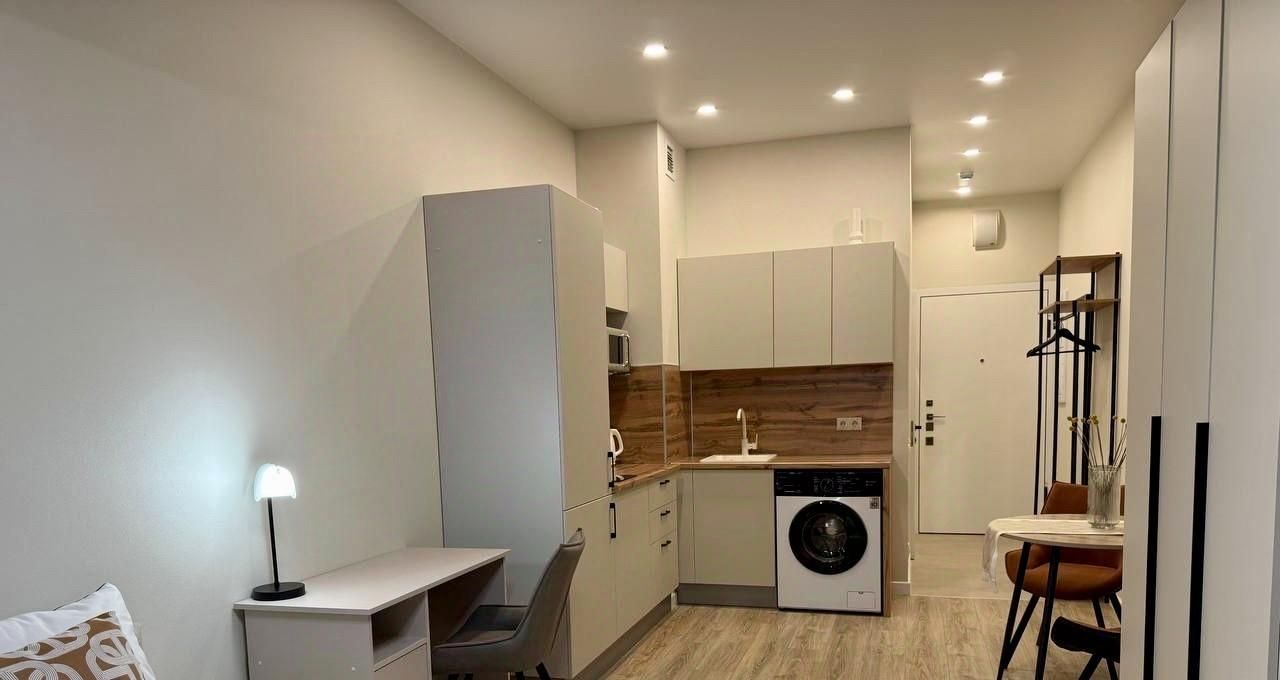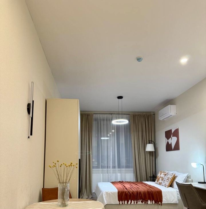 Встроенная кухня, со всей необходимой техникой, кровать со спальным местом 160 на 200 с ортопедическим матрасом, смарт ТВ, рабочее место. Все, что нужно для комфортной жизни )
