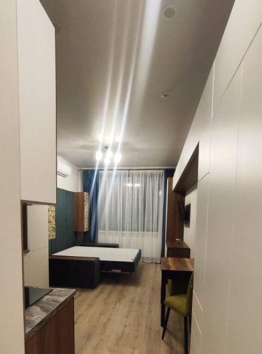 Уютная студия в Жилом комплексе Афи Тауэр. Квартира с новым, дизайнерским ремонтом. Все новое. Вся мебель сделана под параметры квартиры, мебель трансформер. Диван-кровать со местом для хранения. Кровать с ортопедическим матрасом.
