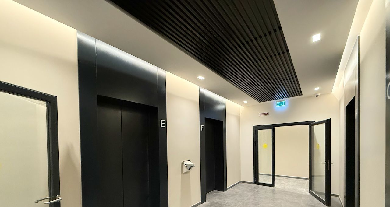 В небоскрёбе просторные стильные лобби, огромный подземный охраняемый паркинг с системой автоматизации проезда Т/С с отличным коэффициентом 0,9% (864 машиноместа) плюс рядом возле ярмарки бесплатный наземный паркинг, восемь сверхскоростных бесшумных лифтов (4 метра в секунду).