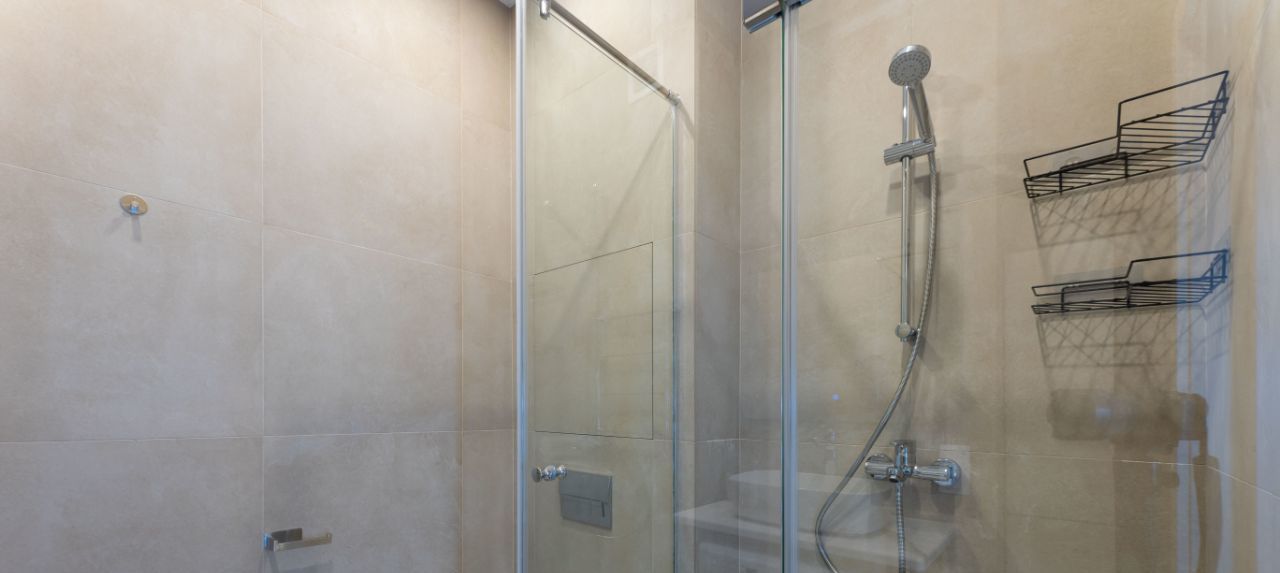 В квартире есть абсолютно всё для комфортного проживания! В ванной стиральная машина, душевая кабина, пенал и этажерка для хранения бытовой химии и предметов личной гигиены.