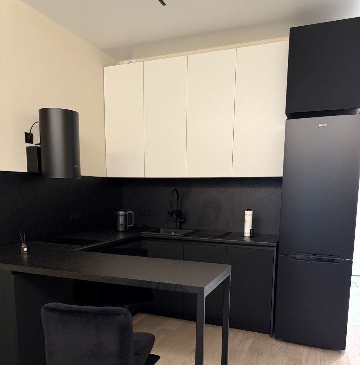 Квартира с евроремонтом, полностью готова к проживанию. Просторная жилая зона 19 кв. м и кухня площадью 8 кв. м оснащены всей необходимой мебелью и техникой: в квартире есть кондиционер, холодильник, посудомоечная машина, телевизор и стиральная машина.