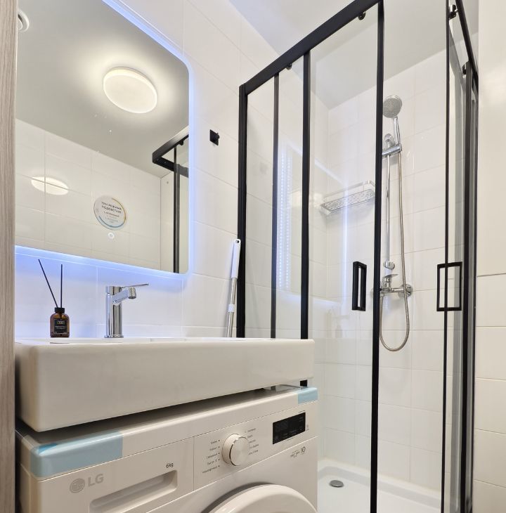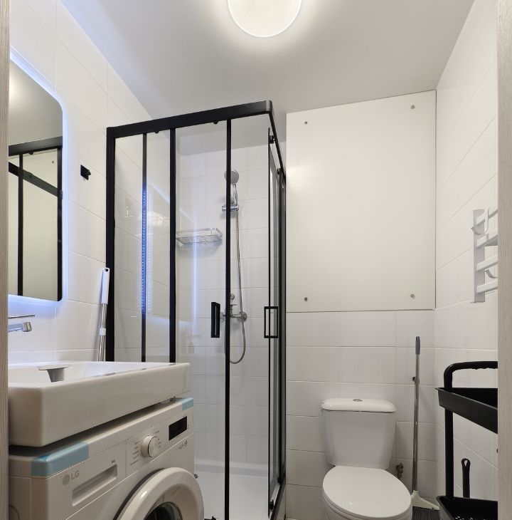 В квартире есть всё необходимое для проживания: варочная панель, холодильник, хорошая стиральная машина, смарт телевизор, отпариватель, сушилка, набор посуды и другое.