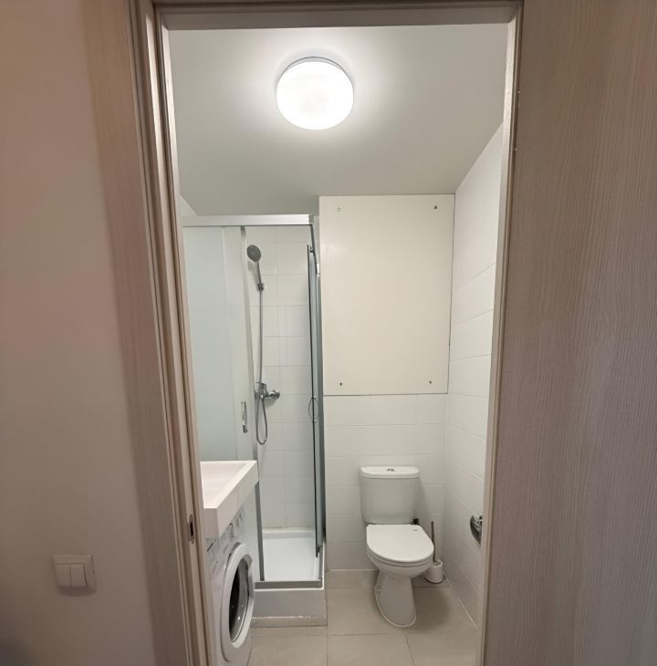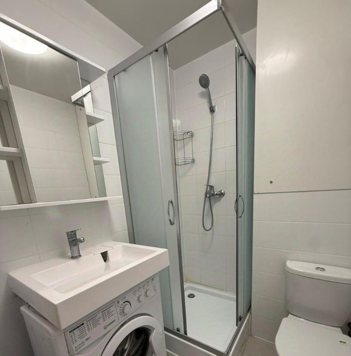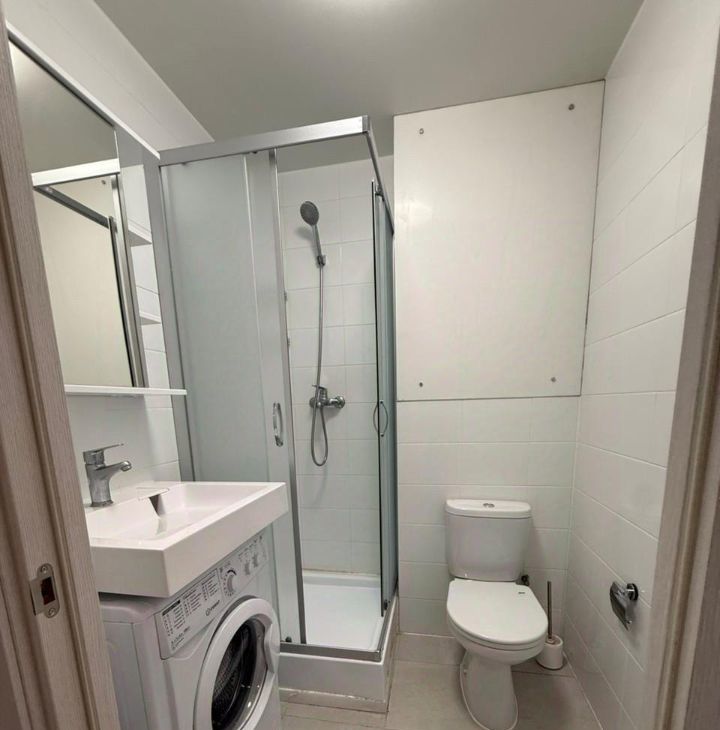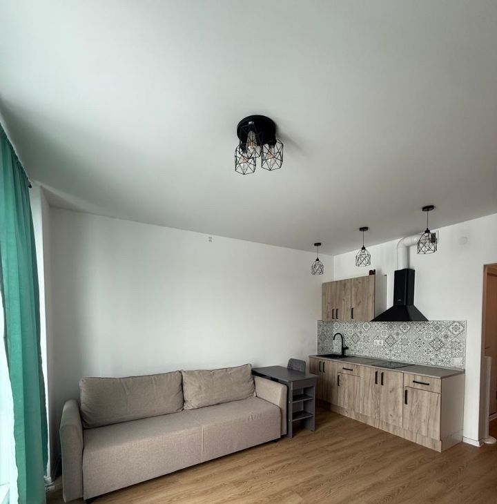 Квартира с ремонтом и полностью готова к комфортному проживанию. Внутри есть все необходимое: современная мебель на кухне и в комнате, холодильник, телевизор и стиральная машина. Санузел совмещенный и оборудован душевой кабиной. Окна выходят на улицу, что обеспечивает много естественного света.