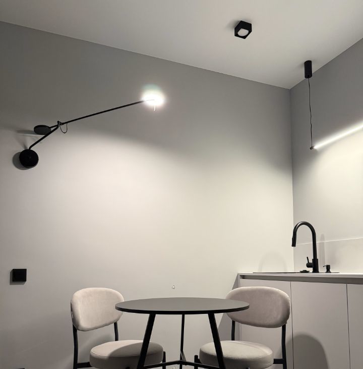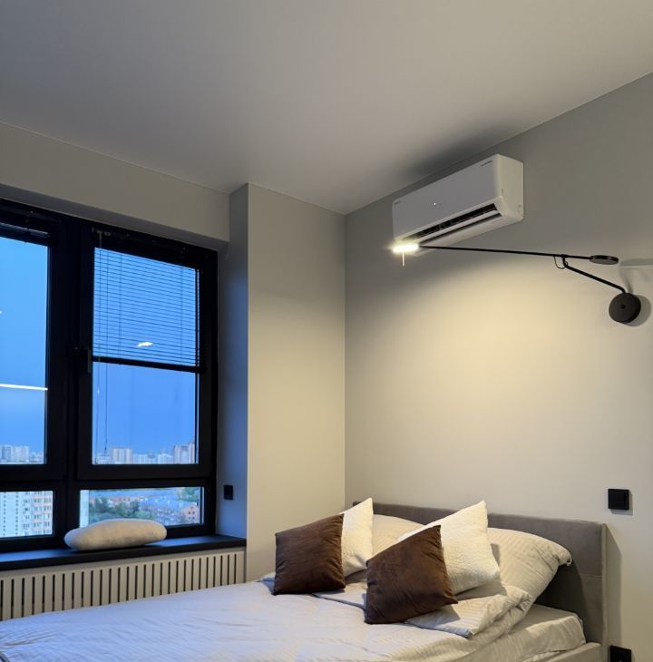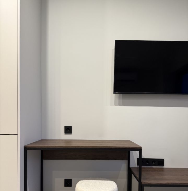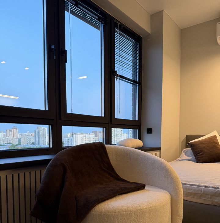 В зоне отдыха имеется кровать с подъемным механизмом , а также дорогим и удобным матрасом Ascona, дизайнерским креслом, телевизором Samsung со smart tv, кондиционером и возможностью расположиться на широком подоконнике. Основное освещение диммируемое, что позволяет создать непревзойденный уют, дополненный теплым светом.