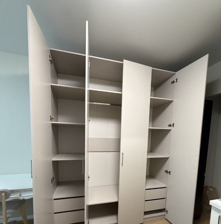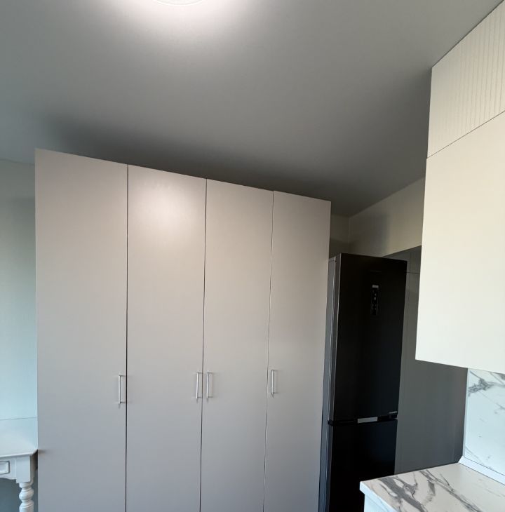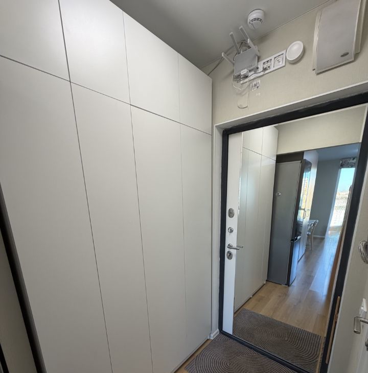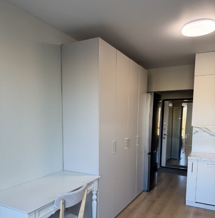 Также в квартире много мест хранения: большой шкаф для одежды в комнате, шкаф для обуви и верхней одежды в прихожей, ящик под диваном, антресоли над кухней.