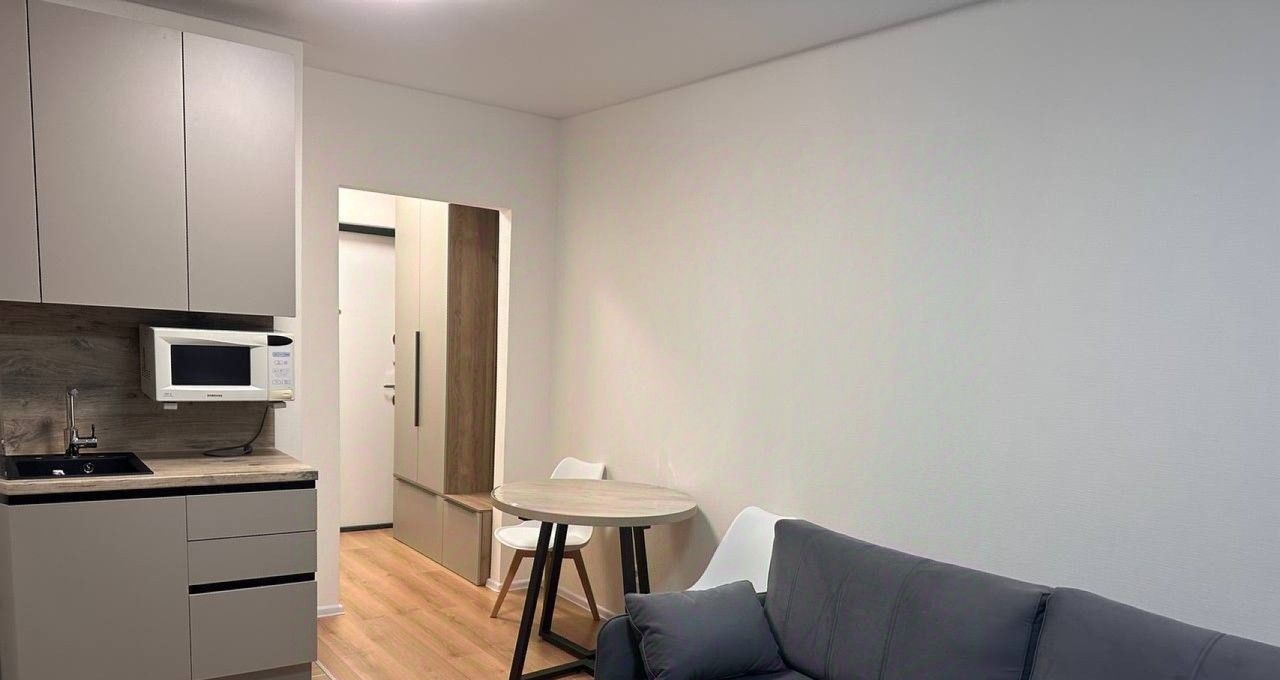 Квартира площадью 20.5 кв. м выполнена с дизайнерским ремонтом и полностью укомплектована всей необходимой техникой и мебелью. Вы оцените современную кухонную гарнитуру, встроенную технику, кондиционер, телевизор и высокоскоростной интернет.