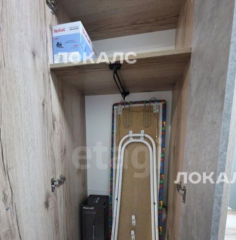 В прихожей хороший шкаф для хранения одежды, в том числе приобрели новый утюг с гладильной доской и ручной пылесос.