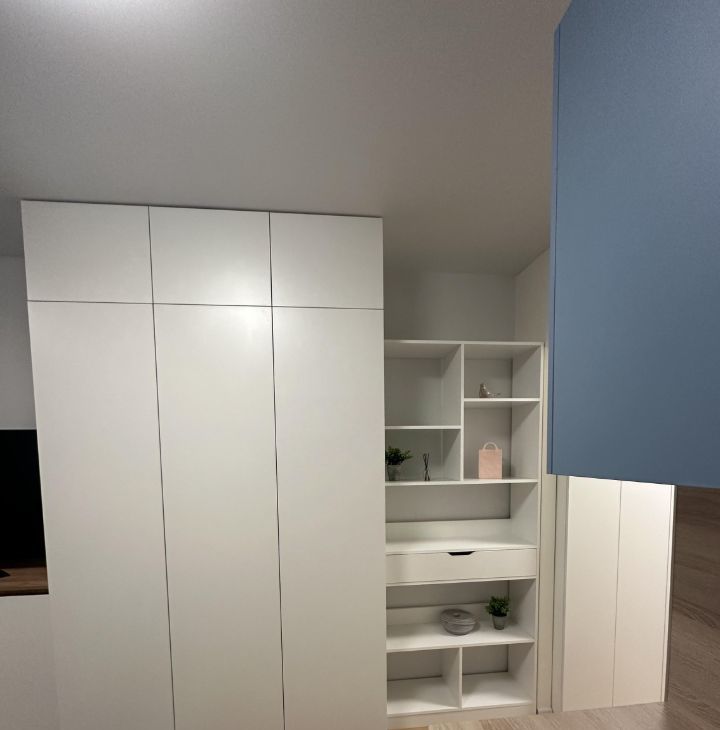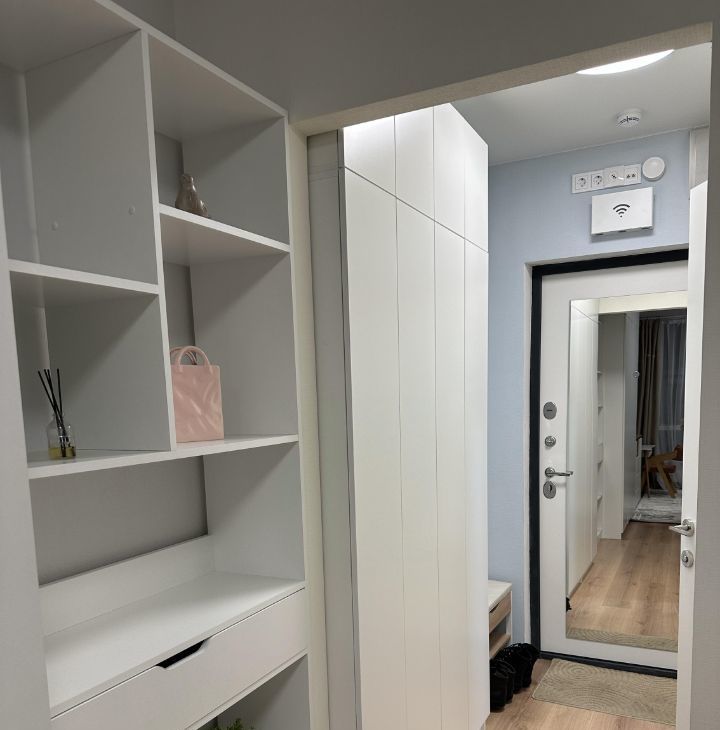 Пространство продумано до мелочей, большое количество шкафов и систем хранения для ваших вещей .