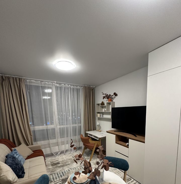 В новом монолитном доме 2025 года постройки сдается светлая, теплая, уютная студия площадью 21 кв. м на 5 этаже современного 21-этажного дома.