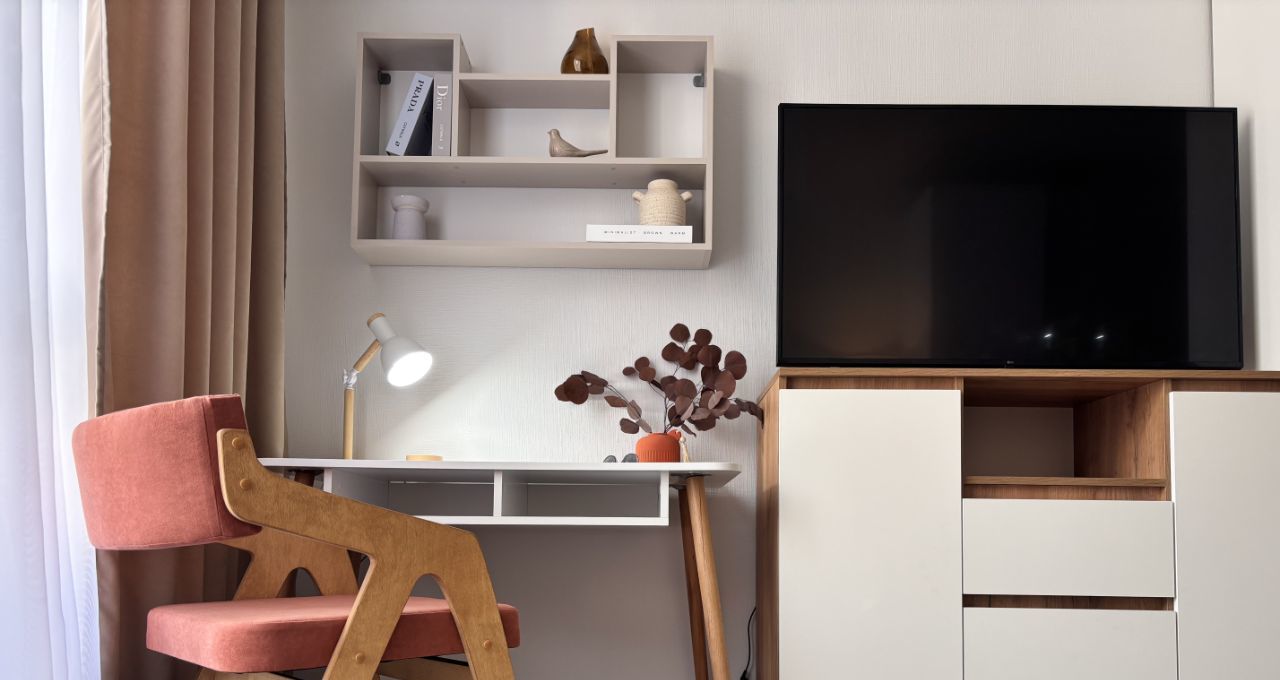 Оснащена современной стильной мебелью и техникой , поэтому здесь приятно находиться .