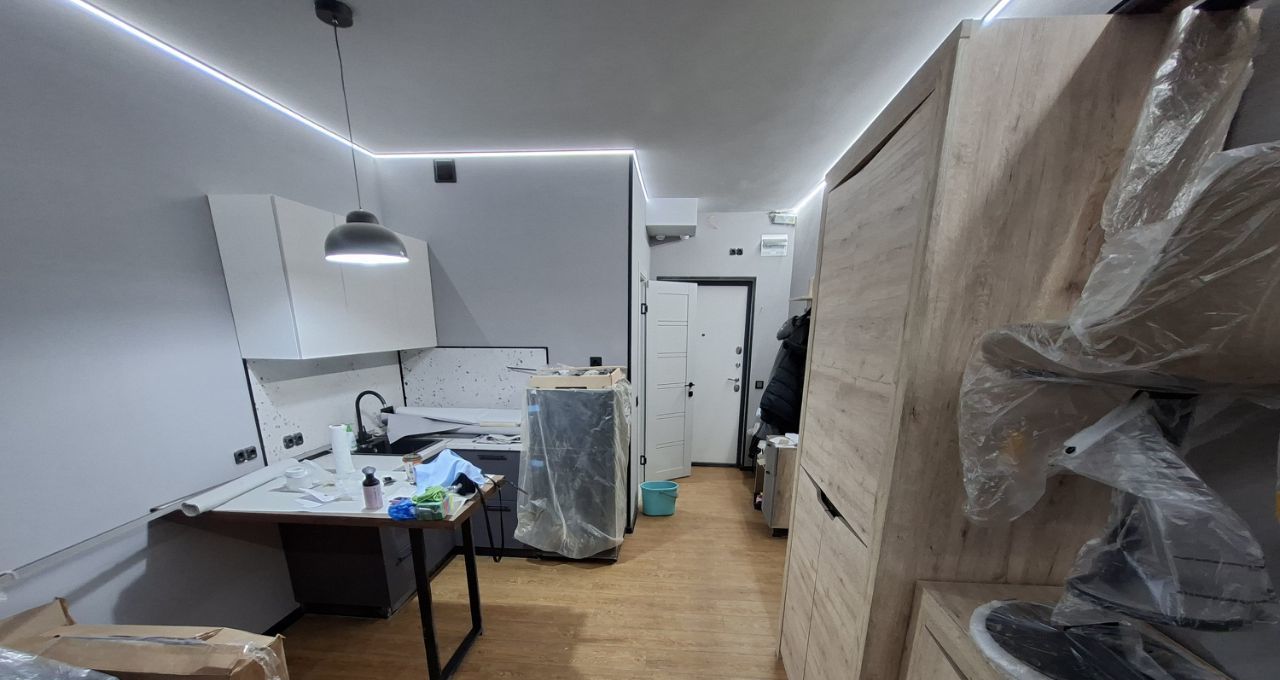 Предлагаем вам арендовать стильную студию с дизайнерским ремонтом в новом доме 2025 года постройки. Квартира расположена на 10 этаже 17-этажного панельного здания с двумя пассажирскими и одним грузовым лифтом. Общая площадь квартиры составляет 21 кв. м, из них 16 кв. м жилая зона и 5 кв. м кухня. Высокие потолки в 2,7 метра создают ощущение простора, а окна выходят на улицу, обеспечивая хорошее естественное освещение.