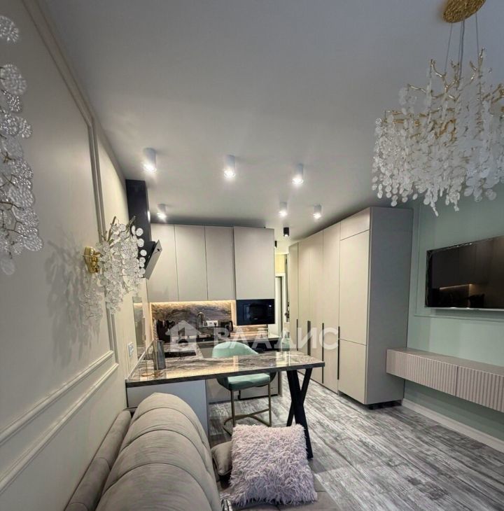 Уютная студия с дизайнерским ремонтом, идеально подойдет для девушки или пары.