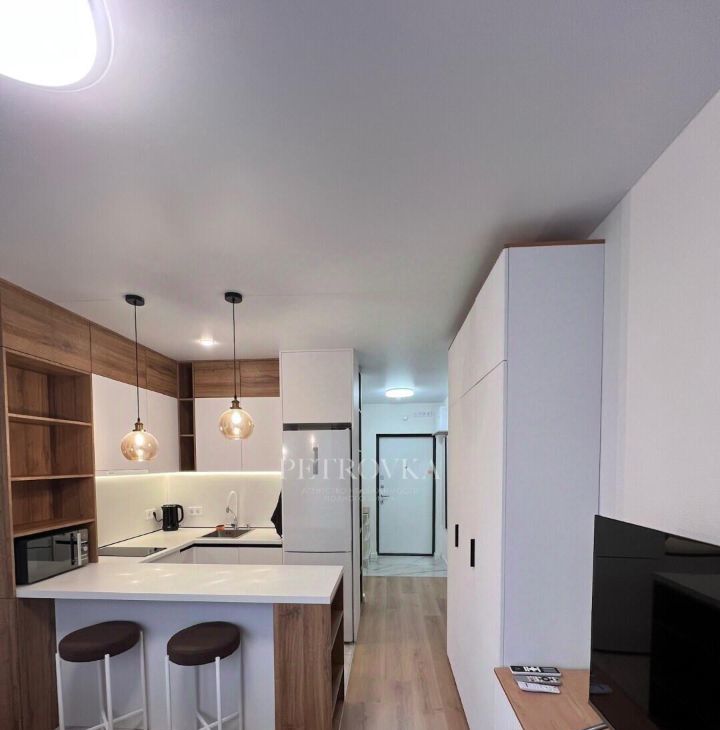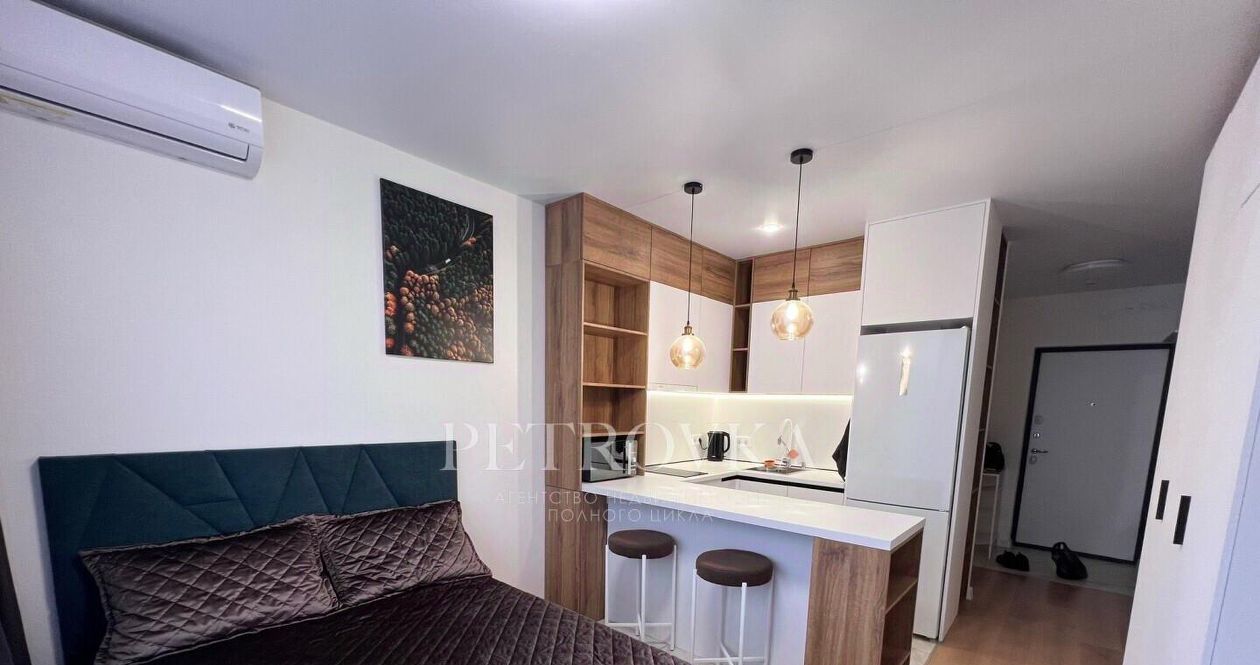 В квартире продуманная мебель, выполненная на заказ, со множеством мест хранения, есть все необходимое для комфортной жизни.