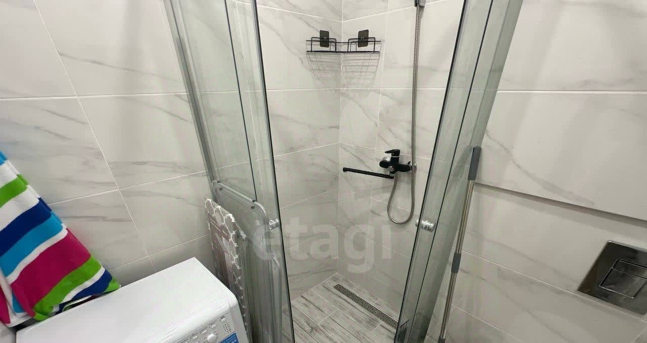 - Есть вся необходимая мебель и техника для проживания: стиральная машина, шкаф, холодильник, диван, телевизор;