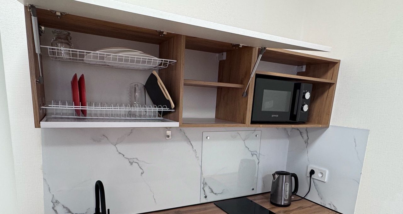 в студии есть вся необходимая бытовая техника и мебель для комфортного проживания.