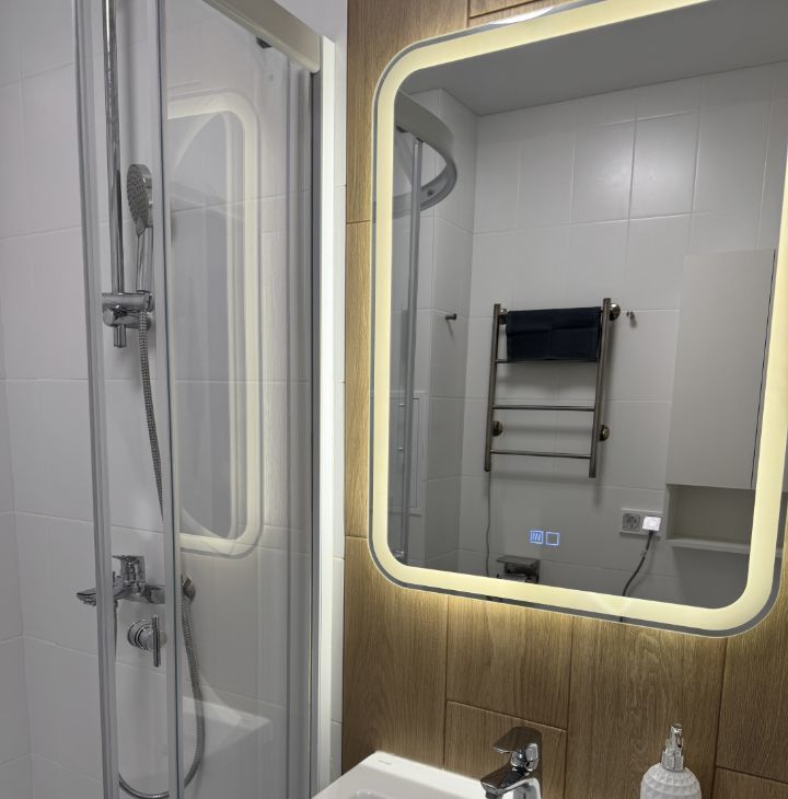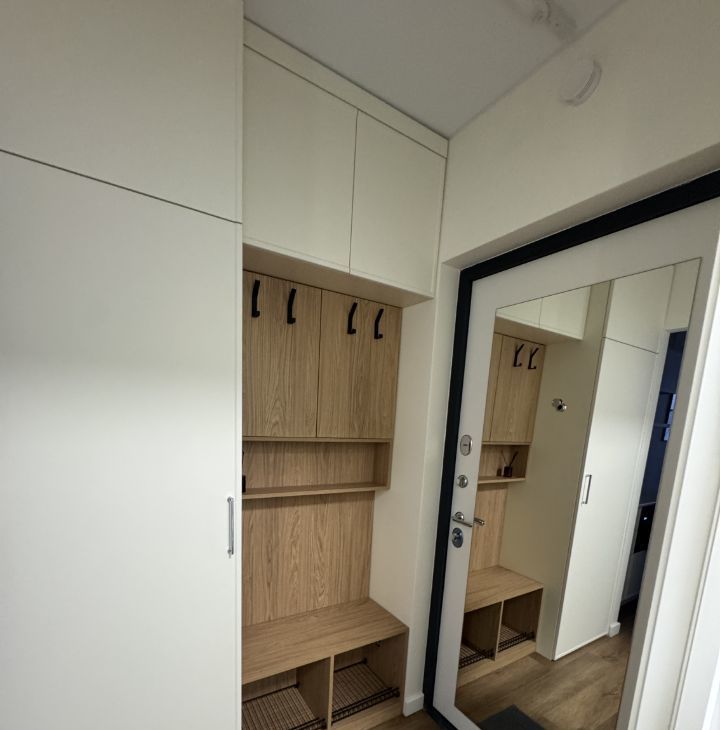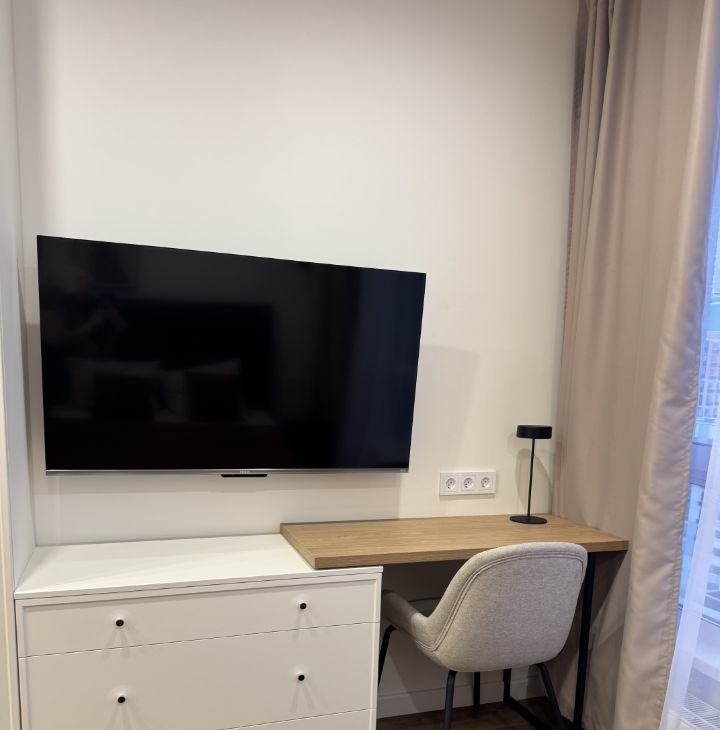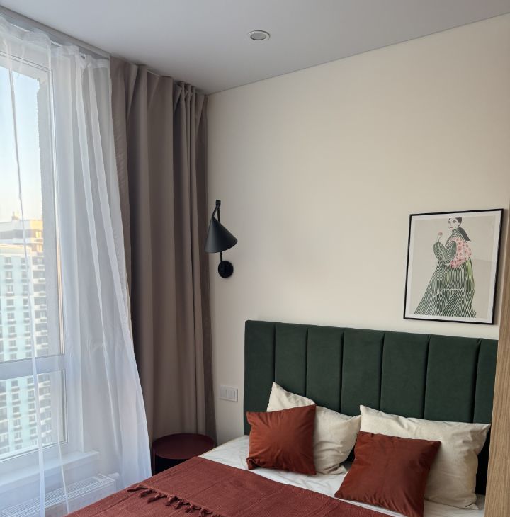 Квартира абсолютно новая, после ремонта, первое заселение — всё новое, аккуратное и продуманное. Полноценная кровать для комфортного сна!