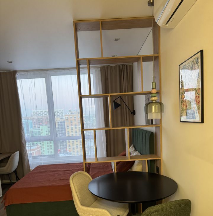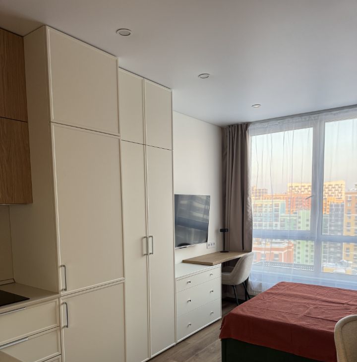 Светлая и очень тёплая студия 21 м² на 17 этаже — с красивым, открытым видом из окна.