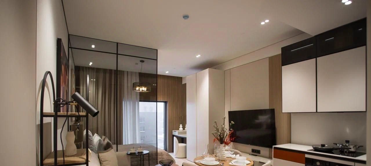 Сдается впервые ДИЗАЙНЕРСКАЯ СТУДИЯ С ПАНОРАМНЫМИ окнами на 9 этаже в ЖК ПРЕМИУМ КЛАССА RED 7 с площадью 42 кв.м. Квартира укомплектована мебелью и бытовой техникой. Готова к заселению, включая кухонные и постельное принадлежности. Коммунальные платежи включены в стоимость кроме счетчиков и интернет.