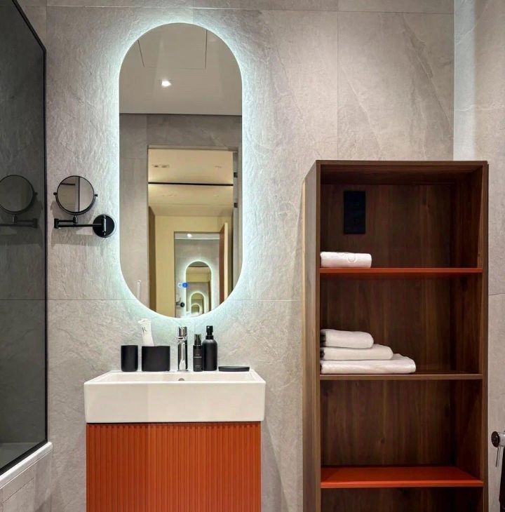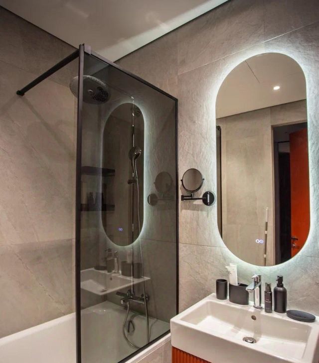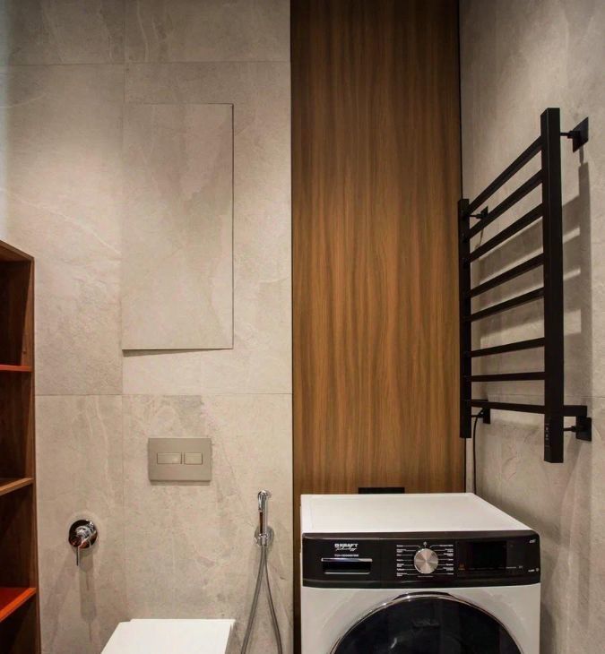 - в ванной комнате оснащена ванна, стиральная машина с функцией сушки, санузлом и теплым полом.