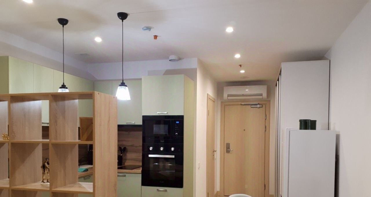 Апартаменты площадью 26 м² выполнены с дизайнерским ремонтом и предлагают продуманную студию с совмещенным санузлом. Вас ждет полностью готовая к проживанию среда: современная кухонная мебель и техника, включая посудомоечную машину, холодильник, стиральную машину, кондиционер, телевизор и высокоскоростной интернет. Вся мебель и техника новые, установлены при сдаче дома в 2022 году. Высота потолков в 3 метра и панорамное остекление создают ощущение простора и свободы.