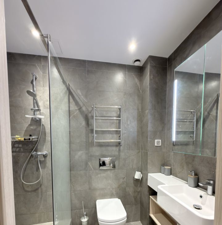В квартире есть всё необходимое для комфортной жизни: современный евроремонт, удобная мебель как в комнате, так и на кухне. На кухне вы найдёте всю нужную технику: холодильник, кондиционер, телевизор и стиральную машину. Санузел совмещённый, оборудован душевой кабиной, что делает утренние сборы быстрыми и удобными.
