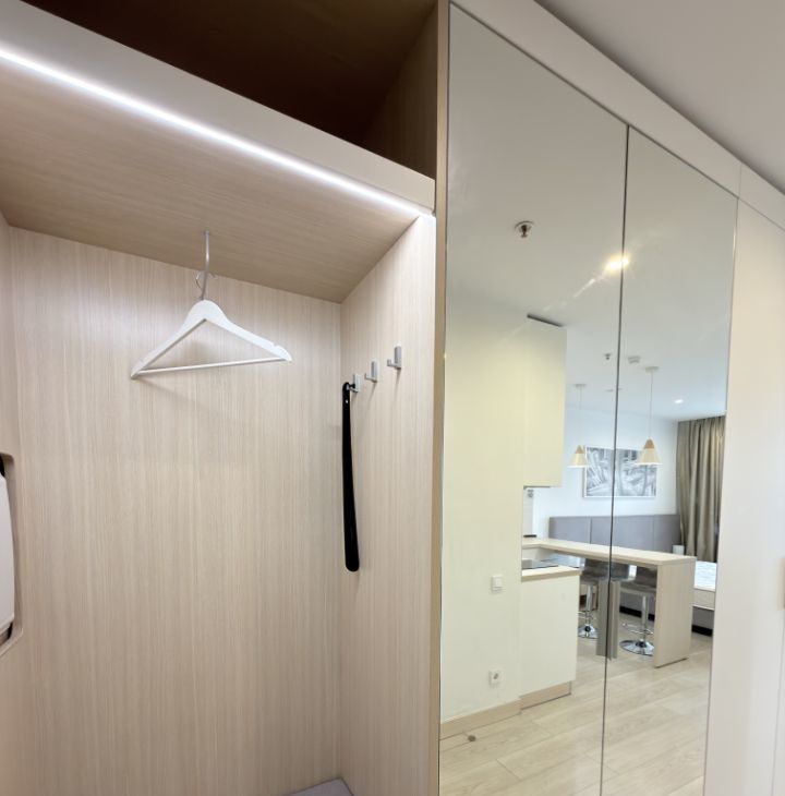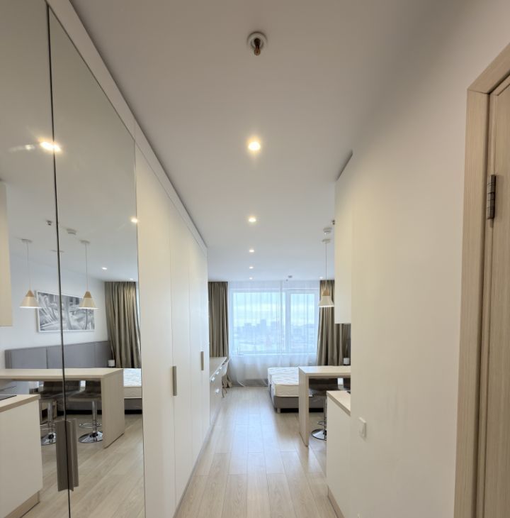 Сдаётся стильная студия с евроремонтом, в апарт- комплексе YES-Технопарк, который находится всего в 2 минутах ходьбы к метро Технопарк. Высота потолков составляет 2.9 метра, а окна выходят на улицу, что наполняет пространство светом и воздухом.