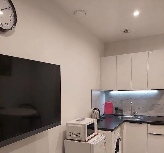 • Полноценная кухня: плита, холодильник, электрочайник, посуда